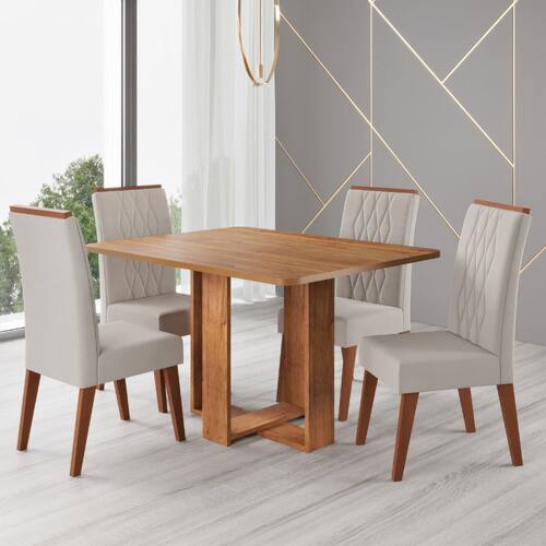 Conjunto Sala de Jantar Mesa 120cm Moscato e 4 Cadeiras Cristal Viero, combina design moderno, conforto e acabamento de qualidade. A mesa com base vazada em MDP e tampo em MDF de 120x80cm possui cantos arredondados que aliam segurança e sofisticação. As quatro cadeiras Cristal em madeira de eucalipto têm assento com espuma D26 e encosto bordado, garantindo resistência, conforto e charme. O revestimento em veludo adiciona um toque macio e elegante, tornando o ambiente mais acolhedor e estiloso para o uso diário ou ocasiões especiais.