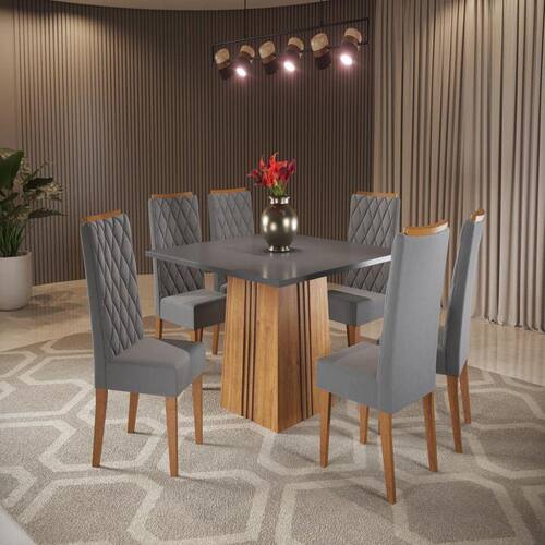 A Sala de Jantar Nany com 6 Cadeiras Iza é a opção ideal para quem quer preencher o espaço para as refeições e não abre mão de conforto. Seu tamanho é adequado às casas brasileiras, se encaixando perfeitamente na cozinha ou na sala de jantar.