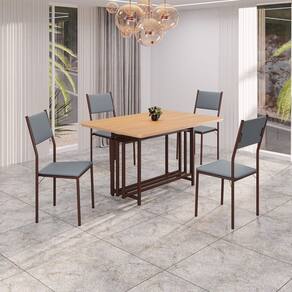 Este conjunto de mesa retangular e 4 cadeiras oferece estilo e praticidade. Com estrutura tubular em aço para estabilidade, o tampo em MDF cinamomo adiciona sofisticação e resistência a riscos e manchas. As cadeiras combinam harmoniosamente com a mesa, garantindo conforto com estofamento. Ideal para diversos espaços, é perfeito para receber convidados ou desfrutar de refeições em família, criando um ambiente acolhedor e elegante.