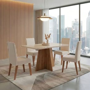MODELO: Conjunto Sala de Jantar Mesa 1,20m com vidro Anjos 4 Cadeiras Linho Milano