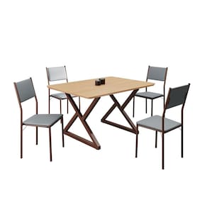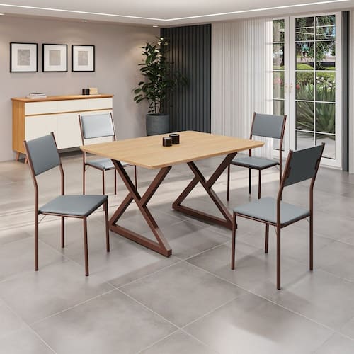 Este conjunto de mesa retangular e 4 cadeiras oferece estilo e praticidade. Com estrutura tubular em aço para estabilidade, o tampo em MDF cinamomo adiciona sofisticação e resistência a riscos e manchas. As cadeiras combinam harmoniosamente com a mesa, garantindo conforto com estofamento. Ideal para diversos espaços, é perfeito para receber convidados ou desfrutar de refeições em família, criando um ambiente acolhedor e elegante.