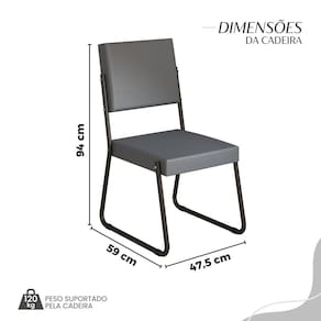 Este conjunto de mesa retangular e 4 cadeiras oferece estilo e praticidade. Com estrutura tubular em aço para estabilidade, o tampo em MDF cinamomo adiciona sofisticação e resistência a riscos e manchas. As cadeiras combinam harmoniosamente com a mesa, garantindo conforto com estofamento. Ideal para diversos espaços, é perfeito para receber convidados ou desfrutar de refeições em família, criando um ambiente acolhedor e elegante. Medida da Mesa (A x L x P): 77cm x 120cm x 90cm Peso da Mesa: 23,36 kg Mesa suporta até: 10 kg Acabamento da Cadeira/Banco: Pintura Texturizada Acabamento da Mesa: Melamínico Ambiente Principal: Sala de Jantar Cadeira/Banco estofada: Encosto e Assento Estofados Cadeira/Banco suporta até: 120 kg Complexidade da Montagem: Baixa: pode ser montado por uma pessoa sozinha Cor: Grafite /Preto Cor do Produto: Grafite /Preto Cor Secundária: Cinza De Canto (Canto Alemão): Não Enchimento do Assento: Espuma D-26 Escala de Brilho: Semi-Fosco Espessura do Tampo: 20 mm Estrutura do Assento: MDF, Eucalipto, espuma e Couro ecológico. Formato do Tampo: Retangular Itens Inclusos: 1 Mesa, 4 Cadeiras, Manual De Montagem E Ferragens. Linha ou Coleção: Napoli Manual de Montagem e Instalação: https://cdn2.madeiramadeira.com.br/atributo/moveis-teixeira/2169373-5246-17218441951256.pdf Material da Base da Mesa: Aço Material da Estrutura da Cadeira: Aço Material do Tampo: MDF Medida da Cadeira/Banco (A x L x P): 94cm x 47,5cm x 59cm Medida do Tampo (L x C x E): 90cm x 120cm x 2cm Mesa Extensível: Não Necessita Montagem: Sim Origem do Produto: Nacional Peso da Cadeira/Banco: 7,06 kg Possui Apoio Para os Pés: Não Quantidade de Lugares: 04 Recomendações de Uso, Manutenção e Limpeza: Usar um pano de tecido macio e seco, evitar detergentes, alvejantes e produtos químicos de limpeza; no tampo usar tecido macio levemente umedecido. Revestimento da Cadeira/Banco: Couro Ecológico Sistema de Montagem: PARAFUSOS