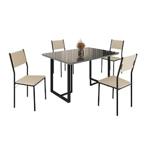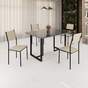 Este conjunto de mesa retangular e 4 cadeiras oferece estilo e praticidade. Com estrutura tubular em aço para estabilidade, o tampo em Mdf Laca grafite com vidro adiciona sofisticação e resistência a riscos e manchas. As cadeiras combinam harmoniosamente com a mesa, garantindo conforto com estofamento. Ideal para diversos espaços, é perfeito para receber convidados ou desfrutar de refeições em família, criando um ambiente acolhedor e elegante.
