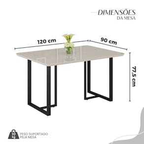 Este conjunto de mesa retangular e 4 cadeiras oferece estilo e praticidade. Com estrutura tubular em aço para estabilidade, o tampo em MDF Laca off white com vidro adiciona sofisticação e resistência a riscos e manchas. As cadeiras combinam harmoniosamente com a mesa, garantindo conforto com estofamento. Ideal para diversos espaços, é perfeito para receber convidados ou desfrutar de refeições em família, criando um ambiente acolhedor e elegante. Medida da Mesa (A x L x P): 77,5cm x 120cm x 90cm Peso da Mesa: 37,2 kg Mesa suporta até: 10 kg Acabamento da Cadeira/Banco: Pintura Texturizada Acabamento da Mesa: Laca Ambiente Principal: Sala de Jantar Cadeira/Banco estofada: Encosto e Assento Estofados Cadeira/Banco suporta até: 120 kg Complexidade da Montagem: Baixa: pode ser montado por uma pessoa sozinha Cor: Grafite / Preto Cor do Produto: Grafite / Preto Cor Secundária: Cinza De Canto (Canto Alemão): Não Enchimento do Assento: Espuma D-26 Escala de Brilho: Semi-Fosco Espessura do Tampo: 25 mm Estrutura do Assento: MDF, Eucalipto, espuma e Couro ecológico. Formato do Tampo: Retangular Itens Inclusos: 1 Mesa, 4 Cadeiras, Manual De Montagem E Ferragens. Linha ou Coleção: Napoli Manual de Montagem e Instalação: https://cdn2.madeiramadeira.com.br/atributo/moveis-teixeira/2170278-5246-17218529860483.pdf Material da Base da Mesa: Aço Material da Estrutura da Cadeira: Aço Material do Tampo: MDF/Vidro Medida da Cadeira/Banco (A x L x P): 94cm x 47,5cm x 59cm Medida do Tampo (L x C x E): 90cm x 120cm x 2,5cm Mesa Extensível: Não Necessita Montagem: Sim Origem do Produto: Nacional Peso da Cadeira/Banco: 7,06 kg Possui Apoio Para os Pés: Não Quantidade de Lugares: 04 Recomendações de Uso, Manutenção e Limpeza: Usar um pano de tecido macio e seco, evitar detergentes, alvejantes e produtos químicos de limpeza; no tampo usar tecido macio levemente umedecido. Revestimento da Cadeira/Banco: Couro Ecológico Sistema de Montagem: Parafusos