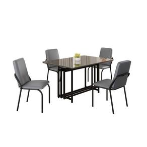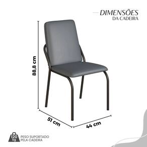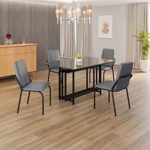 Este conjunto de mesa retangular e 4 cadeiras oferece estilo e praticidade. Com estrutura tubular em aço para estabilidade, o tampo em MDF Laca grafite com vidro adiciona sofisticação e resistência a riscos e manchas. As cadeiras combinam harmoniosamente com a mesa, garantindo conforto com estofamento. Ideal para diversos espaços, é perfeito para receber convidados ou desfrutar de refeições em família, criando um ambiente acolhedor e elegante. Medida da Mesa (A x L x P): 77,5cm x 120cm x 90cm Peso da Mesa: 36,9 kg Mesa suporta até: 10 kg Acabamento da Cadeira/Banco: Pintura Texturizada Acabamento da Mesa: Laca Ambiente Principal: Sala de Jantar Cadeira/Banco estofada: Encosto e Assento Estofados Cadeira/Banco suporta até: 120 kg Complexidade da Montagem: Baixa: pode ser montado por uma pessoa sozinha Cor: Grafite / Preto Cor do Produto: Grafite / Preto Cor Secundária: Cinza De Canto (Canto Alemão): Não Enchimento do Assento: Espuma D-26 Escala de Brilho: Semi-Fosco Espessura do Tampo: 25 mm Estrutura do Assento: MDP de 15mm, espuma 1,2mm, couro ecológico. Formato do Tampo: Retangular Itens Inclusos: 1 MESA, 4 CADEIRAS, MANUAL DE MONTAGEM E FERRAGENS. Linha ou Coleção: Malibu Manual de Montagem e Instalação: https://cdn2.madeiramadeira.com.br/atributo/moveis-teixeira/2175789-4938-17220228852374.pdf Material da Base da Mesa: Aço Material da Estrutura da Cadeira: Aço Material do Tampo: MDF/Vidro Medida da Cadeira/Banco (A x L x P): 88,8cm x 44cm x 51cm Medida do Tampo (L x C x E): 90cm x 120cm x 2,5cm Mesa Extensível: Não Necessita Montagem: Sim Origem do Produto: Nacional Peso da Cadeira/Banco: 6,16 kg Possui Apoio Para os Pés: Não Quantidade de Lugares: 04 Recomendações de Uso, Manutenção e Limpeza: Usar um pano de tecido macio e seco, evitar detergentes, alvejantes e produtos químicos de limpeza; no tampo usar tecido macio levemente umedecido. Revestimento da Cadeira/Banco: Couro Ecológico Sistema de Montagem: PARAFUSOS