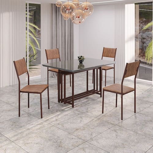 Este conjunto de mesa retangular e 4 cadeiras oferece estilo e praticidade. Com estrutura tubular em aço para estabilidade, o tampo em MDF Laca grafite com vidro adiciona sofisticação e resistência a riscos e manchas. As cadeiras combinam harmoniosamente com a mesa, garantindo conforto com estofamento. Ideal para diversos espaços, é perfeito para receber convidados ou desfrutar de refeições em família, criando um ambiente acolhedor e elegante.
