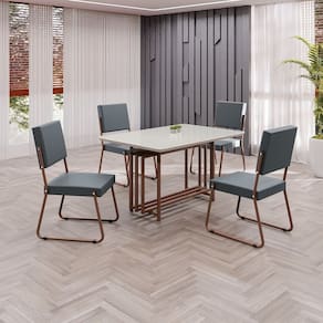 Este conjunto de mesa retangular e 4 cadeiras oferece estilo e praticidade. Com estrutura tubular em aço para estabilidade, o tampo em MDF Laca off white com vidro adiciona sofisticação e resistência a riscos e manchas. As cadeiras combinam harmoniosamente com a mesa, garantindo conforto com estofamento. Ideal para diversos espaços, é perfeito para receber convidados ou desfrutar de refeições em família, criando um ambiente acolhedor e elegante.