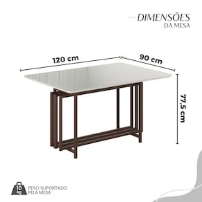 Medida da Mesa (A x L x P): 77,5cm x 120cm x 90cm