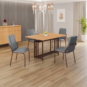Este conjunto de mesa retangular e 4 cadeiras oferece estilo e praticidade. Com estrutura tubular em aço para estabilidade, o tampo em MDF cinamomo adiciona sofisticação e resistência a riscos e manchas. As cadeiras combinam harmoniosamente com a mesa, garantindo conforto com estofamento. Ideal para diversos espaços, é perfeito para receber convidados ou desfrutar de refeições em família, criando um ambiente acolhedor e elegante.