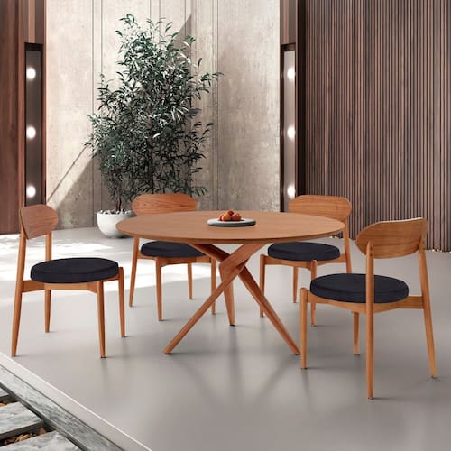 Conjunto Sala de Jantar Hope 135cm Redonda com 4 Cadeiras em Madeira!