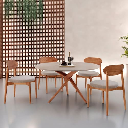 Dê um novo toque de sofisticação e aconchego ao seu lar com o Conjunto Sala de Jantar Hope. Com uma mesa redonda de 135 cm e 4 cadeiras em madeira maciça, este conjunto foi projetado para quem busca um equilíbrio perfeito entre design, qualidade e conforto.