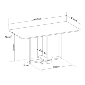 Dimensões da mesa: Altura: 78,8 cm Largura: 160 cm Profundidade: 80 cm Peso: 72,40 kg