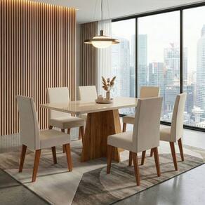 MODELO: Conjunto Sala de Jantar Mesa 1,60m com vidro Anjos 6 Cadeiras Milano