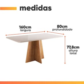 MODELO: Conjunto Sala de Jantar Mesa 1,60m com vidro Anjos 6 Cadeiras Milano