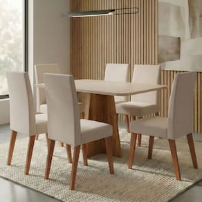 O conjunto de mesa Moove com 6 cadeiras Milano é a escolha ideal para quem busca elegância, conforto e funcionalidade na sala de jantar. A mesa possui tampo em MDF, com design moderno e base resistente que garante estabilidade e sofisticação ao ambiente. As cadeiras Milano são estofadas, proporcionando conforto no uso diário, e contam com estrutura em madeira maciça, que assegura resistência, durabilidade e um acabamento de alto padrão. Um conjunto harmonioso, perfeito para compor espaços acolhedores e cheios de estilo.
