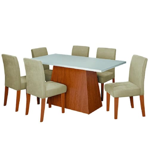 MODELO: Conjunto Sala de Jantar Mesa 1,60m Trento 6 Cadeiras Trieste