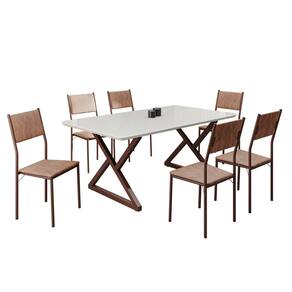 Conjunto Sala de Jantar Mesa 160x90cm Base Império Tampo Mdf Laca com Vidro Florença Marrom