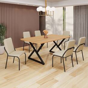 Este conjunto de mesa retangular e 6 cadeiras oferece estilo e praticidade. Com estrutura tubular em aço para estabilidade, o tampo em MDF cinamomo adiciona sofisticação e resistência a riscos e manchas. As cadeiras combinam harmoniosamente com a mesa, garantindo conforto com estofamento. Ideal para diversos espaços, é perfeito para receber convidados ou desfrutar de refeições em família, criando um ambiente acolhedor e elegante.
