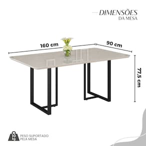 Medida da Mesa (A x L x P): 77,5cm x 160cm x 90cm