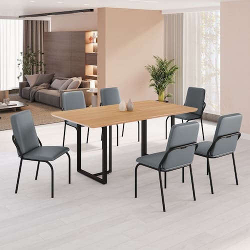 Este conjunto de mesa retangular e 6 cadeiras oferece estilo e praticidade. Com estrutura tubular em aço para estabilidade, o tampo em MDF cinamomo adiciona sofisticação e resistência a riscos e manchas. As cadeiras combinam harmoniosamente com a mesa, garantindo conforto com estofamento. Ideal para diversos espaços, é perfeito para receber convidados ou desfrutar de refeições em família, criando um ambiente acolhedor e elegante.