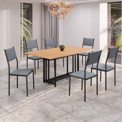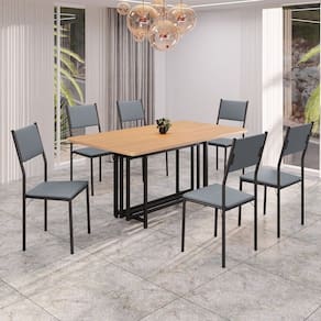 Este conjunto de mesa retangular e 6 cadeiras oferece estilo e praticidade. Com estrutura tubular em aço para estabilidade, o tampo em MDF cinamomo adiciona sofisticação e resistência a riscos e manchas. As cadeiras combinam harmoniosamente com a mesa, garantindo conforto com estofamento. Ideal para diversos espaços, é perfeito para receber convidados ou desfrutar de refeições em família, criando um ambiente acolhedor e elegante. Medida da Mesa (A x L x P): 77cm x 160cm x 90cm Peso da Mesa: 24,4 kg Mesa suporta até: 10.0000 Acabamento da Cadeira/Banco: Pintura Texturizada Acabamento da Mesa: Melamínico Ambiente Principal: Sala de Jantar Cadeira/Banco estofada: Encosto e Assento Estofados Cadeira/Banco Estofada: Encosto e Assento Estofados Cadeira/Banco suporta até: 120.0000 codigo_ean: 7909903964828 Complexidade da Montagem: Baixa: pode ser montado por uma pessoa sozinha Cor: Grafite / Preto Cor do Produto: Grafite / Preto De Canto (Canto Alemão): Não Enchimento do Assento: Espuma D-12 Escala de Brilho: Semi-Fosco Espessura do Tampo: 20 mm Formato do Tampo: Retangular Itens Inclusos: 1 MESA, 6 CADEIRAS, MANUAL DE MONTAGEM E FERRAGENS. Linha ou Coleção: Florença Manual de Montagem e Instalação: https://product-hub-prd.madeiramadeira.com.br/955919/documents/1dff39e3-e7ab-4ca8-afb4-b96259ea97a72166902493817218241514412.pdf Material da Base da Mesa: Aço Material da Estrutura da Cadeira: Aço Material do Tampo: MDF Medida da Cadeira/Banco (A x L x P): 90,5cm x 44,5cm x 49cm Medida do Tampo (L x C x E): 90cm x 160cm x 2cm Mesa Extensível: Não Necessita Montagem: Sim Origem do Produto: Nacional Peso da Cadeira/Banco: 4,74 kg Possui Apoio Para os Pés: Não Quantidade de Lugares: 06 Recomendações de Uso, Manutenção e Limpeza: Usar um pano de tecido macio e seco, evitar detergentes, alvejantes e produtos químicos de limpeza; no tampo usar tecido macio levemente umedecido. Revestimento da Cadeira/Banco: Couro Ecológico Sistema de Montagem: PARAFUSOS