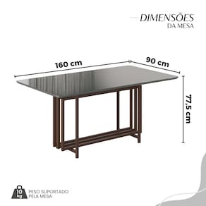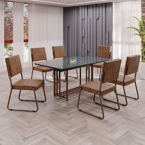 Este conjunto de mesa retangular e 6 cadeiras oferece estilo e praticidade. Com estrutura tubular em aço para estabilidade, o tampo em MDF Laca grafite com vidro adiciona sofisticação e resistência a riscos e manchas. As cadeiras combinam harmoniosamente com a mesa, garantindo conforto com estofamento. Ideal para diversos espaços, é perfeito para receber convidados ou desfrutar de refeições em família, criando um ambiente acolhedor e elegante. Medida da Mesa (A x L x P): 77,5cm x 160cm x 90cm Peso da Mesa: 47,4 kg Mesa suporta até: 10 kg Acabamento da Cadeira/Banco: Pintura Texturizada Acabamento da Mesa: Laca Ambiente Principal: Sala de Jantar Cadeira/Banco estofada: Encosto e Assento Estofados Cadeira/Banco suporta até: 120 kg Complexidade da Montagem: Baixa: pode ser montado por uma pessoa sozinha Cor: Marrom Cor do Produto: Marrom Cor Secundária: Marrom De Canto (Canto Alemão): Não Enchimento do Assento: Espuma D-26 Escala de Brilho: Semi-Fosco Espessura do Tampo: 25 mm Estrutura do Assento: MDF, Eucalipto, espuma e Couro ecológico. Formato do Tampo: Retangular Itens Inclusos: 1 Mesa, 6 Cadeiras, Manual De Montagem E Ferragens. Linha ou Coleção: Napoli Manual de Montagem e Instalação: https://cdn2.madeiramadeira.com.br/atributo/moveis-teixeira/2171155-4938-17219287859193.pdf Material da Base da Mesa: Aço Material da Estrutura da Cadeira: Aço Material do Tampo: MDF/Vidro Medida da Cadeira/Banco (A x L x P): 94cm x 47,5cm x 59cm Medida do Tampo (L x C x E): 90cm x 160cm x 2,5cm Mesa Extensível: Não Necessita Montagem: Sim Origem do Produto: Nacional Peso da Cadeira/Banco: 7,06 kg Possui Apoio Para os Pés: Não Quantidade de Lugares: 06 Recomendações de Uso, Manutenção e Limpeza: Usar um pano de tecido macio e seco, evitar detergentes, alvejantes e produtos químicos de limpeza; no tampo usar tecido macio levemente umedecido. Revestimento da Cadeira/Banco: Couro Ecológico Sistema de Montagem: Parafusos