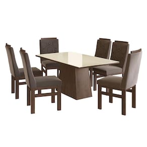 Mesas e Cadeiras são indispensáveis para o funcionamento da casa e é no cômodo de confraternização que elas ganham protagonismo. Composto por peças de muito charme, o conjunto de Mesa e Cadeiras ref:140/26 produzida em madeira maciça orna o uso desse móvel importante com mesas para 4 e 6 lugares para garantir uma usabilidade plena para o seu dia a dia. Ideal para cozinhas e salas de jantar, o kit oferece amplo espaço para que você possa dispor pratos, copos, talheres e até uma travessa com o quitute da vez, enquanto acomoda os convidados com aconchego e receptividade. Ah, para completar, é só combiná-la com o restante da mobília de sua preferência e criar o ambiente intimista perfeito para a sua rotina ou reuniões entre amigos. Medida da Mesa (A x L x P): 80x160x90cm Peso da Mesa: 48 kg Mesa suporta até: 100.0000 Acabamento da Cadeira/Banco: Pintura UV Acabamento da Mesa: Pintura UV Almofada do assento: Fixa Altura do Conjunto: 106 Ambiente Principal: Sala de Jantar Cadeira/Banco Estofada: Encosto e Assento Estofados Cadeira/Banco estofada: Encosto e Assento Estofados Cadeira/Banco suporta até: 120.0000 codigo_ean: 7909903125328 Complexidade da Montagem: Média: pode ser montado por mais de uma pessoa e/ou necessite de maior conhecimento para montagem Cor: Marrom/Off White Cor da Base: Marrom Cor do Produto: Marrom/Off White Cor do Tampo: Bege Cor Flex: Cor Marrom Com Tecido Joli Marrom Cor Secundária: Marrom De Canto (Canto Alemão): Não Enchimento do Assento: Espuma D-23 Enchimento do Encosto: Espuma D-14 Escala de Brilho: Semi-Brilho Espessura do Tampo: 29 mm Formato do Tampo: Retangular Informações Complementares: Mesa Para Sala de Jantar Com Vidro Lapidado de Preto, Com 6 Cadeiras de Madeira Maciça Reflorestada Itens Inclusos: 1 Mesa, 6 Cadeiras, Kit Ferragens e Manual de Montagem Linha ou Coleção: 2022 Manual de Especificação Técnica: https://product-hub-prd.madeiramadeira.com.br/787220/documents/9a97158e-f381-4b51-aee4-2b79b3eaee361013865manualmesaecadeira.pdf Manual de Montagem e Instalação: https://product-hub-prd.madeiramadeira.com.br/787220/documents/af42b984-b10b-4b00-963e-54923dc8ac921013866manualmesaecadeira.pdf Manutenção: Limpeza com pano macio e levemente umedecido Material da Base da Mesa: MDP Material da Estrutura da Cadeira: Madeira Maciça Material do Tampo: Vidro/MDP Medida da Base (A x L x P): 75x67x41cm Medida da Cadeira/Banco (A x L x P): 106x45x49cm Medida do Tampo (L x C x E): 160x90x2,9cm Mesa Extensível: Não Montagem Flex: Apenas Opção do Manual Necessita Montagem: Sim Origem do Produto: Nacional Peso da Cadeira/Banco: 9 kg Possui Apoio para Braços: Não Possui Apoio Para os Pés: Sim Possui Suporte Giratório: Não Quantidade de Cadeiras: 6 Quantidade de Lugares: 06 Recomendações de Uso, Manutenção e Limpeza: Limpeza com pano macio e levemente umedecido Revestimento da Cadeira/Banco: Suede Sistema de Montagem: Parafusos, Cantoneiras, Tapa Furo e Cola Vidro Temperado: Não Ean: 7909903125328