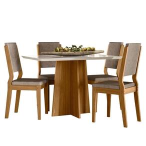 1 Mesa (Tampo + Base/Pés), 4 Cadeiras, kit ferragem e Manual para Montagem.