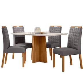 1 Mesa (Tampo + Base/Pés), 4 Cadeiras, kit ferragem e Manual para Montagem.