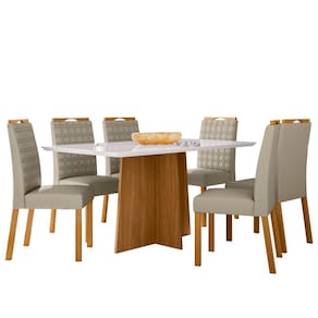 Conjunto Sala de Jantar Mesa Anitta 1,60m Tampo Mdf e Vidro com 6 Cadeiras Mariah Ypê/Off White/Ja01 - New Ceval