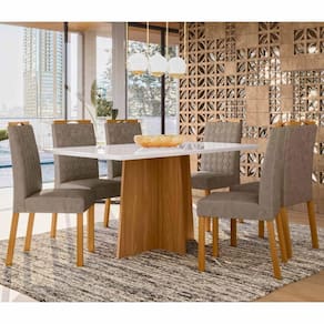 1 Mesa (Tampo + Base/Pés), 6 Cadeiras, kit ferragem e Manual para Montagem.