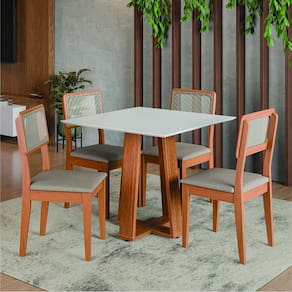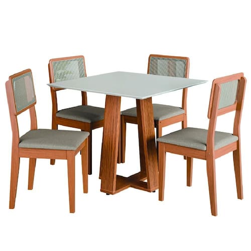 MODELO: Conjunto Sala de Jantar Mesa Athenas Quadrada 4 Cadeiras Santiago