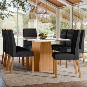 Junto a ela, as Cadeiras Mariah são o complemento ideal. Seu design sofisticado garante conforto excepcional, permitindo que você desfrute de momentos agradáveis à mesa.