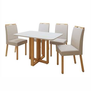 É ideal para refeições em família? Claro, ela acomoda 4 pessoas com conforto. Medida da Mesa (A x L x P): 78cmx120cmx80cm Peso da Mesa: 24,02 kg Mesa suporta até: 50 kg Acabamento da Cadeira/Banco: Pintura Acabamento da Mesa: Pintura UV Ambiente Principal: Sala de Jantar Cadeira/Banco Estofada: Encosto e Assento Estofados Cadeira/Banco estofada: Encosto e Assento Estofados Cadeira/Banco suporta até: 120 kg Cadeira/Banco Suporta Até: 120.0000 codigo_ean: 7900288235121 Complexidade da Montagem: Alta: deve ser montado por um montador especializado Cor: Amêndoa Clean/Off White/Naturale Creme Cor do Produto: Amêndoa Clean/Off White/Naturale Creme Cor Secundária: Marrom De Canto (Canto Alemão): Não Enchimento do Assento: Espuma D-20 Enchimento do Encosto: Espuma D-18 Escala de Brilho: Fosco Espessura do Tampo: 25 mm Estrutura do Assento: MDF/MDP/Espuma Formato do Tampo: Retangular Itens Inclusos: 1 Mesa, 4 Cadeiras, Kit Ferragens e Manual de Montagem Linha ou Coleção: Lunen/Jade Manual de Montagem e Instalação: https://product-hub-prd.madeiramadeira.com.br/558193045/documents/83c10ab3-65e0-4b29-89f8-7c8f2aee31ef9f4dfd7cbf1793da1756917341.pdf Marca: Móveis Lopas Material da Base da Mesa: MDF/MDP Material da Estrutura da Cadeira: MDF/MDP Material do Tampo: MDF Material Principal: MDF/MDP Medida da Cadeira/Banco (A x L x P): 96cmx42cmx54cm Medida do Tampo (L x C x E): 120cmx80cmx25mm Mesa Extensível: Não Necessita Montagem: Sim Origem do Produto: Nacional Peso da Cadeira/Banco: 12,5 kg Possui Apoio Para os Pés: Não Possui Vidro: Não Quantidade de Cadeiras: 4 Quantidade de Lugares: 04 Recomendações de Uso, Manutenção e Limpeza: Limpar com pano macio e levemente umedecido. Não utilizar solventes a base e de inflamáveis. Não utilizar produtos abrasivos. Revestimento da Cadeira/Banco: Veludo Sistema de Montagem: Parafusos. Tipo de Assento: Fixo Tipo de Encosto: Fixo