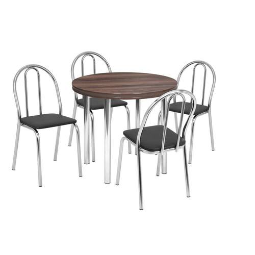 Conjunto Sala de Jantar Mesa com 4 Cadeiras Cromado/Nogueira/Preto - Prata