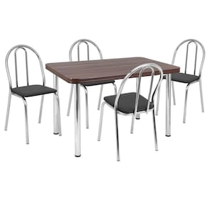 Tre Paroni Móveis, fabricante de móveis há mais de 36 anos, produzindo design com qualidade. Apresenta seu conjunto de mesa de jantar com tampo de 45 mm em MDP/BP e pés cromados, ideal para cozinha ou sala de jantar, acompanhada de 4 cadeiras cromadas revestidas em couro sintético com assento em espuma D15, proporcionando conforto e bem estar. Medida da Mesa (A x L x P): 78 cm x 120 cm x 75 cm Peso da Mesa: 18,4 kg Mesa suporta até: 60.0000 Acabamento da Cadeira/Banco: Cromado Acabamento da Mesa: Cromado Acompanha Manual de Instalação: Sim Almofada do assento: Fixa Altura do Conjunto: 87 cm Ambiente Principal: Sala de Jantar Cadeira/Banco Estofada: Somente Assento Estofado Cadeira/Banco estofada: Somente Assento Estofado Cadeira/Banco suporta até: 100.0000 codigo_ean: 7909903544907 Complexidade da Montagem: Baixa: pode ser montado por uma pessoa sozinha Cor: Cromado/Nogueira/Preto Cor do Produto: Cromado/Nogueira/Preto Cor Flex: Não De Canto (Canto Alemão): Não Design da Base: 4 Pés Escala de Brilho: Brilhante Espessura do Tampo: 45 mm Estrutura do Assento: Aglomerado Estrutura do Encosto: Aço cromado Formato do Tampo: Retangular Itens Inclusos: 1 Mesa, 4 Cadeiras e Manual de Montagem Manual de Montagem e Instalação: https://product-hub-prd.madeiramadeira.com.br/889486/documents/8a8a5d90-990a-477a-8a7c-d7e3734ffcd5745463000001manualmontagem.pdf Material da Base da Mesa: Aço Cromado Material da Estrutura da Cadeira: Aço Material do Tampo: MDP Material Principal: Aço Cromado Material Principal das Cadeiras/Bancos: Aço Medida da Base (A x L x P): 78 cm x 120 cm x 75 cm Medida da Cadeira/Banco (A x L x P): 87 cm x 43 cm x 44 cm Medida do Tampo (L x C x E): 120 cm x 75 cm x 4,5 cm Mesa Dobrável: Não Mesa Extensível: Não Montagem Flex: Não Necessita Montagem: Sim Origem do Produto: Nacional Peso da Cadeira/Banco: 3,3 kg Possui Apoio para Braços: Não Possui Apoio Para os Pés: Não Possui Prateleiras: Não Possui Suporte Giratório: Não Possui Vidro: Não Quantidade de Cadeiras: 4 Quantidade de Lugares: 04 Recomendações de Uso, Manutenção e Limpeza: Deve ser feita com pano macio e seco ou levemente umedecido com água e sabão neutro. Não devem ser utilizados abrasivos como palha de aço e objetos cortantes. Sistema de Montagem: Parafusos e Minifix Tipo de Assento: Fixo Tipo de Encosto: Fixo