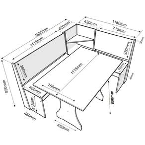 ITENS INCLUSOS: 1 Canto alemão, 1 mesa,1 manual de montagem e 1 kit parafusos