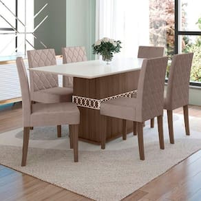 Reunir amigos e família em casa para aquele jantar é incrível! E para quem gosta sabe a importância de ter móveis confortáveis elegantes e de qualidade. Com o Conjunto Sala de Jantar da Poliman você terá isso e muito mais. Com design contemporâneo a Mesa de Jantar Ágata é perfeita para completar seu ambiente. Possui base retangular que traz mais robustez com aplique em MDF 3D auto adesivo para uso opcional, tampo 160x90cm em MDP 25mm ideal para 6 lugares, com bordas chanfradas que valorizam o produto deixando o modelo ainda mais requintado. As sapatas plásticas garantem melhor durabilidade e estabilidade. Acabamento em pintura UV, disponível em padrões amadeirados com perfeita combinação com os mais variados ambientes.Seu conjunto de cadeiras em MDF com encosto e assento esfofados traz o conforto que você precisa.
