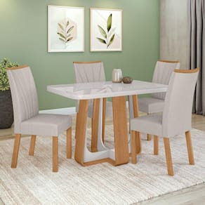 As cadeiras que acompanham o conjunto aliam conforto e sofisticação. Estofadas com espuma D-20 no assento e D-18 no encosto, as linhas do produto adaptam-se ao corpo e proporcionam maior conforto, oferecem uma experiência confortável em todas as refeições. A estrutura em MDF e MDP com pés reforçados garante estabilidade e resistência, suportando até 100kg. O detalhe das sapatas em PVC protege o piso e aumenta a durabilidade. Disponíveis no tecido Linho, as cadeiras se adaptam facilmente a qualquer estilo de decoração. Desenho minimalista na espuma do encosto garantindo conforto e harmonia em qualquer ambiente.