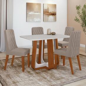 Conjunto Sala de Jantar Mesa Easy Pop 120x80cm Tampo Vidro/MDF com 4 Cadeiras Seat Suede Animale Bege Frassino/off White Design Moderno, Conforto e Sofisticação para o seu Lar.