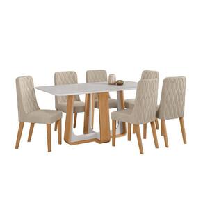 Conjunto Sala de Jantar Mesa Easy Pop 170x90cm Tampo Vidro/MDF com 6 Cadeiras Seat Linho Rinzai Bege Amendoa/Off White Design Moderno, Conforto e Sofisticação para o seu Lar.