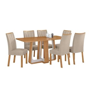 Conjunto Sala de Jantar Mesa Easy Pop 170x90cm Tampo MDF com 6 Cadeiras Confort Linho Rinzai Bege Amêndoa/Off White Design Moderno, Conforto e Sofisticação para o seu Lar.