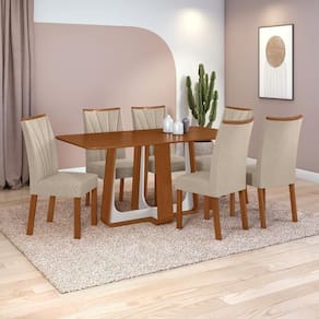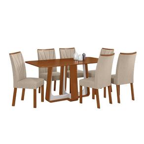 Conjunto Sala de Jantar Mesa Easy Pop 170x90cm Tampo MDF com 6 Cadeiras Confort Linho Rinzai Bege Frassino/Off White Design Moderno, Conforto e Sofisticação para o seu Lar.