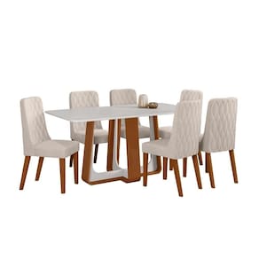 Conjunto Sala de Jantar Mesa Easy Pop 170x90cm Tampo Vidro/MDF com 6 Cadeiras Seat Boucle Bege Frassino/Off White Design Moderno, Conforto e Sofisticação para o seu Lar.
