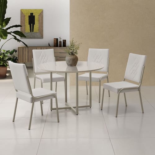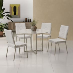 Conjunto Moderno, Elegante Design Clássico e Sofisticado. Mesa com Pés Robustos em Aço Carbono com Pintura Electrostática a Pó, dando Maior Durabilidade ao Produto, Tampo de MDF Com Vidro Colado-Dando Acabamento e Sofisticação a Mesa. Cadeiras Reforçadas, Assento e Encosto Estofados, Desenvolvido Pensando no Mais Absoluto Conforto. Conjunto Compacto, se encaixa a Pequenos Espaços e não Passará Desapercebido no Ambiente que Estiver. Medida da Mesa (A x L x P): 76X110X110 Peso da Mesa: 26,45 kg Mesa suporta até: 40.0000 Acabamento da Cadeira/Banco: Pintura Epóxi Acabamento da Mesa: Pintura Epóxi Acompanha Manual de Instalação: Sim Almofada do assento: Removível Altura do Conjunto: 92 cm Ambiente Principal: Sala de Jantar Cadeira/Banco Estofada: Encosto e Assento Estofados Cadeira/Banco estofada: Encosto e Assento Estofados Cadeira/Banco suporta até: 120.0000 codigo_ean: 7909903971994 Complexidade da Montagem: Baixa: pode ser montado por uma pessoa sozinha Cor: Champagne /Bege/Off White Cor do Produto: Champagne /Bege/Off White De Canto (Canto Alemão): Não Design da Base: Em X Enchimento do Assento: Espuma D-23 Enchimento do Encosto: Espuma D-16 Escala de Brilho: Semi-Fosco Espessura do Tampo: 30 mm Informações Complementares: Conjunto Em Aço Na Cor Champagne- Tampo Mdf Com Vidro Colado Na Cor Off White - Assento E Encosto Tecido Bege (A-512) Itens Inclusos: 2 Pés Em L, 1 Pé Em U E Uma Chapa De União, Tampo, 4 Estrutura De Cadeira, 4 Assentos, 4 Encosto , Manual E Kit De Montagem Linha ou Coleção: Moscou Manual de Especificação Técnica: https://product-hub-prd.madeiramadeira.com.br/959806/documents/7b76f2ff-5ad9-42e6-8a36-301aac082da92461710598517291048355779.pdf Manual de Montagem e Instalação: https://product-hub-prd.madeiramadeira.com.br/959806/documents/33fdbd82-7801-4a70-b772-39c1edbf0fa32461709598517291048333068.pdf Material da Base da Mesa: Aço Carbono Material da Estrutura da Cadeira: Aço Carbono Material do Tampo: Vidro/MDF Material Principal: Aço Carbono Material Principal das Cadeiras/Bancos: Aço Carbono Medida da Base (A x L x P): 74X90X90 Medida da Cadeira/Banco (A x L x P): 92X49X52 Medida do Tampo (L x C x E): 110X110X3 Mesa Dobrável: Não Mesa Extensível: Não Necessita Montagem: Sim Origem do Produto: Nacional Peso da Cadeira/Banco: 5,4 kg Possui Apoio para Braços: Não Possui Apoio Para os Pés: Não Possui Prateleiras: Não Possui Suporte Giratório: Não Possui Vidro: Sim Quantidade de Cadeiras: 4 Quantidade de Lugares: 04 Recomendações de Uso, Manutenção e Limpeza: Limpeza com pano macio e levemente umedecido. Não ultilizar solventes a base e de inflamáveis. Não utilizar produtos abrasivos. Revestimento da Cadeira/Banco: Poliéster Sistema de Montagem: Parafusos E Chave Allen Tipo de Assento: Removível