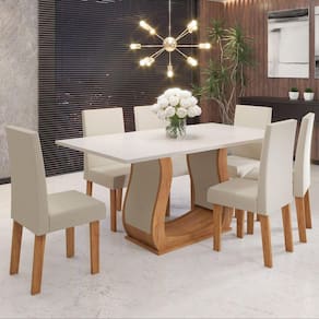 Se você quer uma mesa que tenha espaço para todas as delícias de um almoço de domingo e ainda acomode seus convidados de maneira eficiente, o Conjunto de Mesa de Jantar Emmy é a pedida certa, deixando sua de jantar harmônica e aconchegante Medida da Mesa (A x L x P): 79,4x160x80cm Peso da Mesa: 41.8 Mesa suporta até: 50 Acabamento da Cadeira/Banco: Pintura UV Acabamento da Mesa: Pintura UV Almofada do assento: Fixa Altura do Conjunto: Ambiente Principal: Sala de Jantar Apoio para Braços Estofado: Cadeira/Banco estofada: Encosto e Assento Estofados Cadeira/Banco suporta até: 90 Complexidade da Montagem: Média: pode ser montado por mais de uma pessoa e/ou necessite de maior conhecimento para montagem Cor: Marrom/Blonde/Bege Cor da Base: Marrom Cor do Produto: Marrom/Blonde/Bege Cor do Tampo: Bege Cor Flex: Cor Secundária: Marrom De Canto (Canto Alemão): Não Design da Base: Enchimento do Assento: Espuma D-20 Enchimento do Encosto: Espuma D-12 Escala de Brilho: Semi-Brilho Espessura do Tampo: 25 Espessura do Vidro: Estrutura do Assento: MDP/Espuma Estrutura do Encosto: MDP/Espuma Formato do Tampo: Retangular Informações Complementares: Sala de Jantar 6 lugares Itens Inclusos: 1 Mesa, 6 Cadeiras, Kit Ferragens e Manual de Montagem Linha ou Coleção: Manual de Especificação Técnica: https://cdn2.madeiramadeira.com.br/atributo/viero-moveis/1081251-sala-livia-venus.pdf Manual de Montagem e Instalação: https://cdn2.madeiramadeira.com.br/atributo/viero-moveis/1081252-sala-emmy-cad-venus.pdf Material da Base da Mesa: MDF/MDP Material da Estrutura da Cadeira: MDF/MDP Material do Tampo: MDP Medida da Base (A x L x P): Medida da Cadeira/Banco (A x L x P): 98,5cmx42cmx48cm Medida do Canto Alemão (A x L x P): Medida do Suporte Giratório (L x C x E): Medida do Tampo (L x C x E): 160cmx80cmx2,5cm Mesa Extensível: Não Montagem Flex: Não Necessita Montagem: Sim Origem do Produto: Nacional Peso da Cadeira/Banco: 14.31 Possui Apoio para Braços: Não Possui Apoio Para os Pés: Não Possui Suporte Giratório: Quantidade de Lugares: 06 Recomendações de Uso, Manutenção e Limpeza: Limpar com pano levemente umedecido com água Revestimento da Cadeira/Banco: Veludo Sistema de Montagem: Parafusos+cavilhas Tipo de Madeira Maciça da Base da Mesa: Tipo de Madeira Maciça do Tampo: Vidro Temperado: