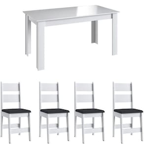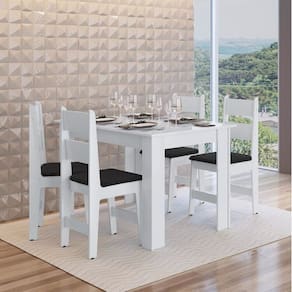 Conjunto Mesa Fixa com 04 Cadeira MDF Milano, CJE11200 da Móveis Canção. Conjunto confeccionado em MDP e MDF de alta qualidade com acabamento em pintura UV. Esse conjunto vai dar uma cara nova e elegante para sua sala de jantar. Possui Portas: Não Altura do Conjunto: 91 cm Ambiente: null Ambiente Principal: Sala de Jantar Cor: Branco Informação Complementar: 1x Mesa para Sala de Jantar Fixa 1200x780 Branco Largura: 120 cm Altura: 75 cm Peso: 16 kg Profundidade: 78 cm Necessita Montagem: Sim