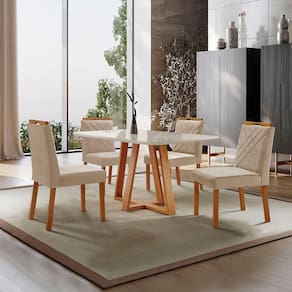 Escala de Brilho: Semi-Brilho Cor Predominante: Mel Encosto e Assento Estofados, Revestidos em Veludo ou Linho Enchimento do Assento: Espuma D-20 Medida da Mesa (A x L x P): 78 X 140 X 80 cm Medida da Base (A x L x P): 75 X 60 X 100 cm Medida do Tampo (L x C x E): 84 X 144 X 2,1 cm Medida da Cadeira/Banco (A x L x P): 94 X 46 X 55 cm Material da Base da Mesa: MDF/Madeira Maciça Tipo de Madeira Maciça da Base da Mesa: Eucalipto Tratado Imunizado e seco em Estufa Peso da Cadeira: 8,5 Kg Cadeira Suporta Até 120 Kg Acabamento da Cadeira: Verniz Natural Material da Estrutura da Cadeira: MDF/Madeira Maciça Cor do Tampo: Off White Cor da Base: Mel Enchimento do Encosto: Espuma D-14 Almofada do Assento: Fixa Estrutura do Assento: MDF 6mm/Espuma 40mm Peso da Mesa: 29 Kg Acabamento da Mesa: Verniz Natural Mesa Suporta Até 30 Kg Formato do Tampo: Retângular Material do Tampo: Vidro 3mm/MDF 18mm