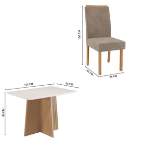 Características Cadeira: 4 Cadeiras com espaldar Densidade espuma D20 Encosto bordado Estrutura em MDF e MDP Peso máximo suportado 120kg Tecido veludo