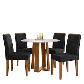 Conjunto Sala de Jantar Mesa Isabela 1,00m com 4 Cadeiras Amanda Ypê/Off White/Ja03 - New Ceval